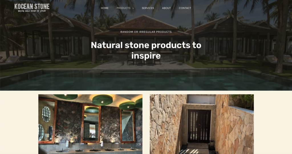The Kocean Stone Website acts as an online brochure, displaying and promoting all of their Bali Stone and Indonesian style decorative items.